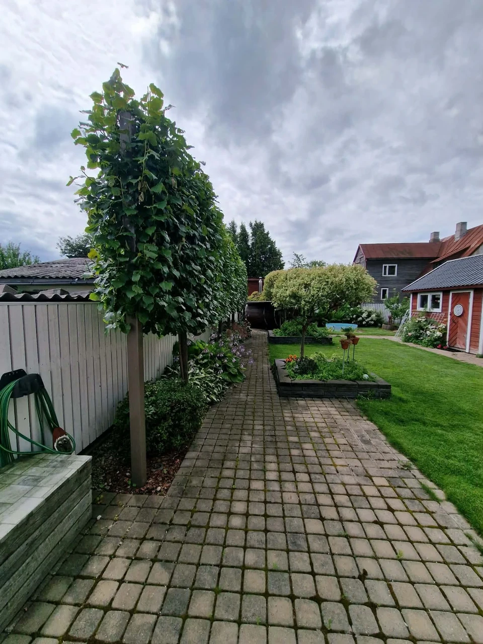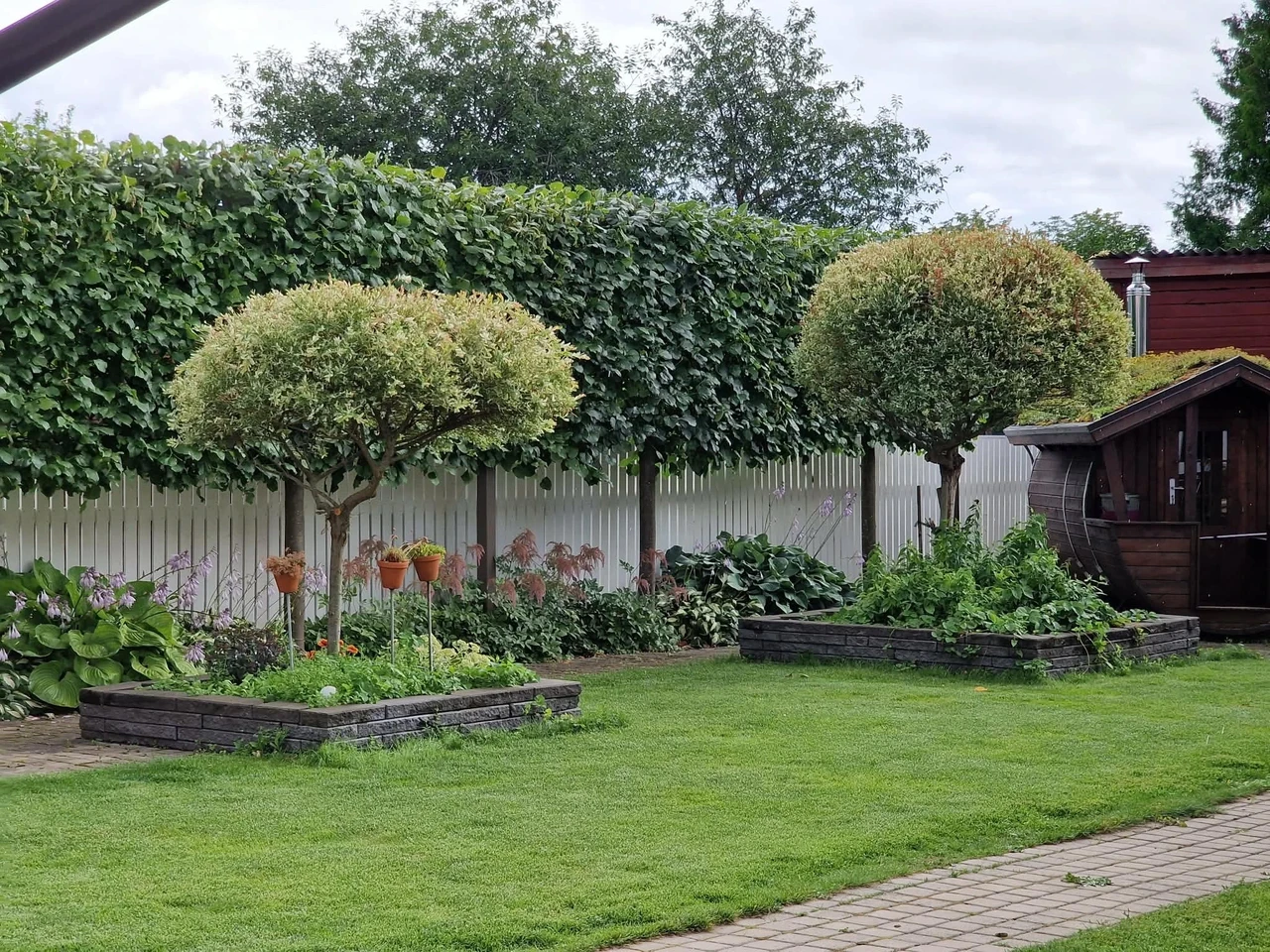 Koostöös kliendiga leidsime "kuurivaatele" lahenduse pärnadest spaleerheki näol, millel on koheselt hea kõrgus ja ei võta kitsas väikeses aias palju ruumi.